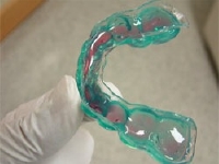 バイオフィルムが取り除かれた後、ラッグリテイナー に薬剤をいれて歯牙表面の除菌を おこないます。ドラッグリテイナーを使用すると歯牙表面にだけ抗菌剤を効率的かつ安全に適用する ことができます。口腔内では舌や唾液などにより歯牙表面に効率よく薬剤を適用しにくい ところですが、ラッグリテイナーを用いることで一定濃度の薬剤を一定時間、適用することが できます。使用する抗菌剤としては現在のところクロルヘキシジン とポピドンヨードが用いられています。所用時間は5分です。